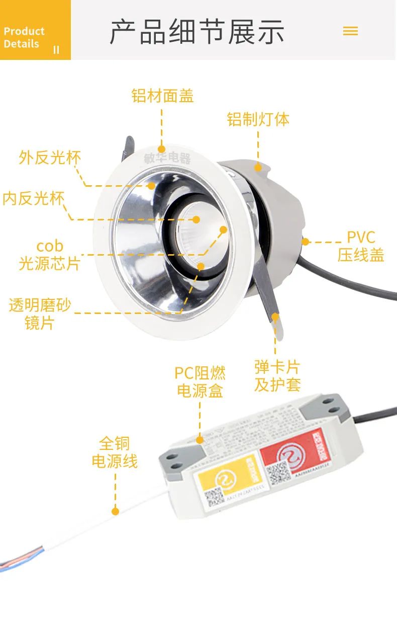敏华高亮防眩嵌入式天花射灯