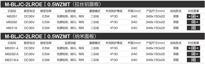 M6291(M-BLJC-2LROEⅠ0.5WZMT)集电集控349mm双面全塑料标志灯/R3图/拉丝铝面板 | M6292(M-BLJC-2LROEⅠ0.5WZMT)集电集控349mm双面全塑料标志灯/R6图/拉丝铝面板 |