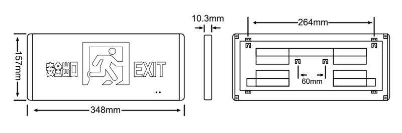 | 145 | M6715 | M6715(M-BLZC-1LROEⅠ0.5WZPG)自电集控单面弧边铝材标志灯/R1图 | 【材质】拉丝铝面板 【防护等级】IP30 【安装方式】挂墙式 【额定电压】DC36V 【主电功耗】0.5W 【LED光源】高亮、低功耗LED 【应急时间】≥90分钟 【电池】1.2V300mAh镍氢电池 【外形尺寸(长×宽×厚)】348*157*10mm 【孔距尺寸】264/60mm 【包装数量】20台 | ![]() |